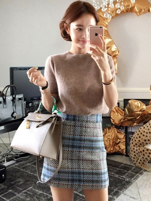 肌寒くなってくる秋ごろに活躍しはじめるニットは、ツイードスカートと相性◎なんです。重くなりすぎないようにミニ丈をチョイスするとスッキリとしたシルエットに♡