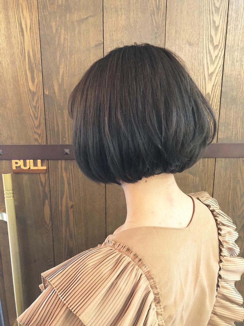 光が当たった時にオリーブカラーが見えるダークトーンのヘアカラーです。ボブヘアの方なら知的に落ち着いて見えます。ロングの方ならクールで凛とした印象に。パーソナルカラー秋の方でヘアカラーに迷ったときは、オリーブ系かブラウン系のダークトーンにすると失敗しにくいのでおすすめです。