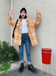 イエローとブルーのチェック柄ワンピースが印象的なこちらのコーデ。暗めカラーのアイテムが多くなる冬はニット帽などの小物でビタミンカラーをプラスすると、全体が明るい雰囲気になるのでおすすめです!