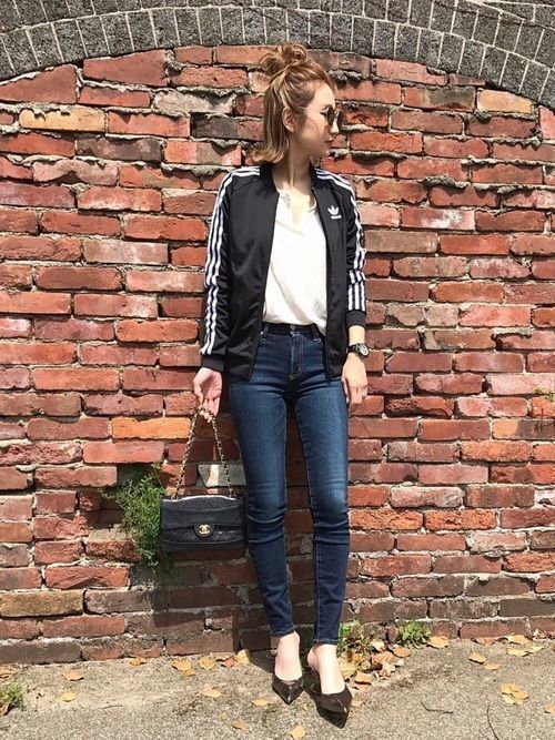 アディダスジャージ×マウジースキニーでスポーティミックスコーデ