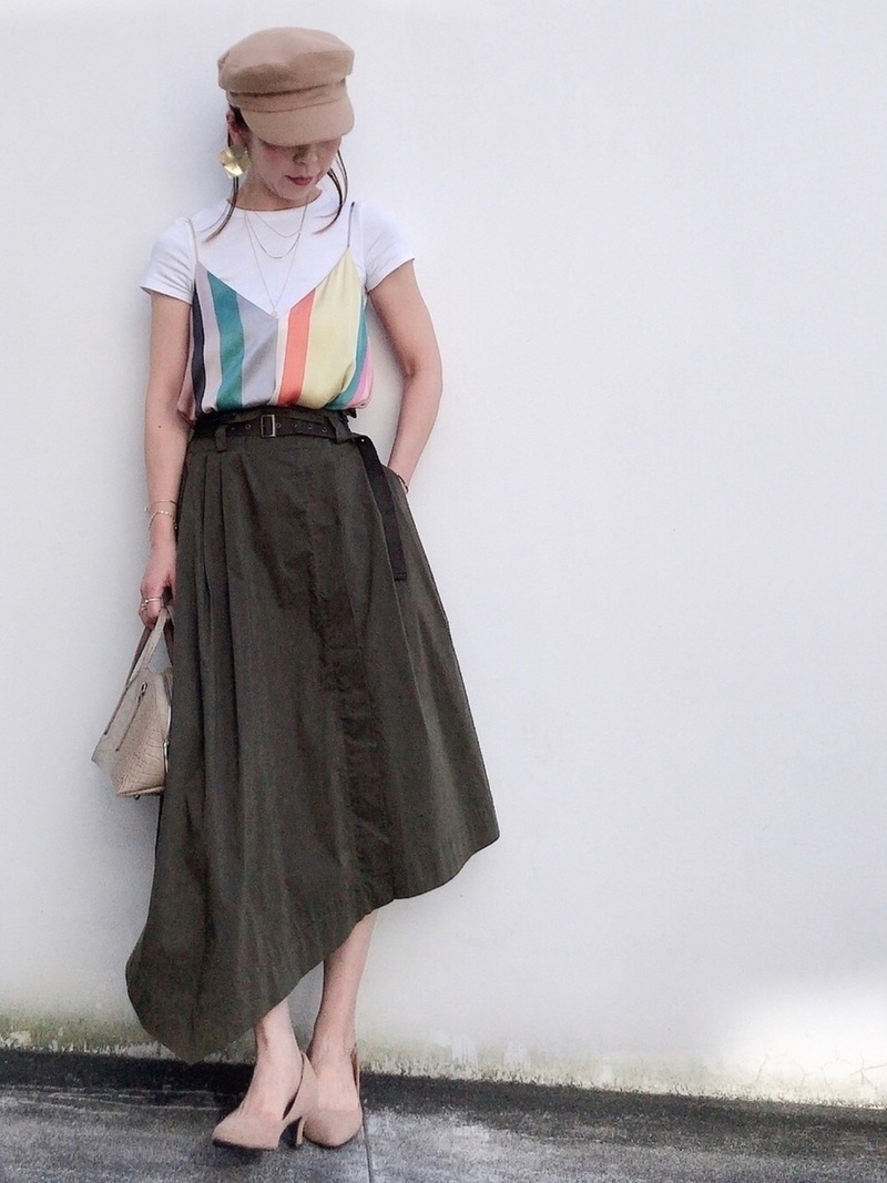 上級者コーデ♡アシンメトリータイプのカーキスカート