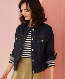 シンプルですっきりとしたデザインのノーカラーGジャン。コンパクトでスタイルアップして見えるのが嬉しい一枚。サイドにはポケットもついているため実用性も高いアウターです。インディゴ染めされたこちらの商品は、自然の色合いを楽しむことができます。淡い春カラーのインナーやバッグと合わせるのがおすすめです♡