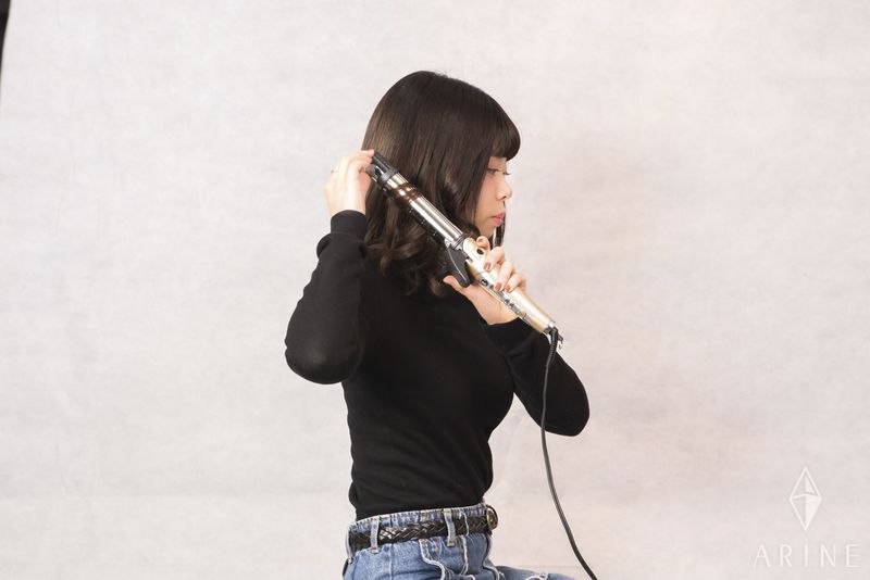 ポイントは、毛先中心に巻き上げ、トップとバックは巻かないことです!毛束を太めにとって巻くことで、ボリューム感は抑えられるのに巻きがしっかり出ますよね。
