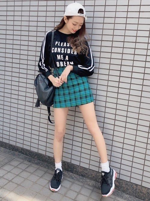 《王道派》チェックタイトスカート×スニーカーの今どきカジュアル!