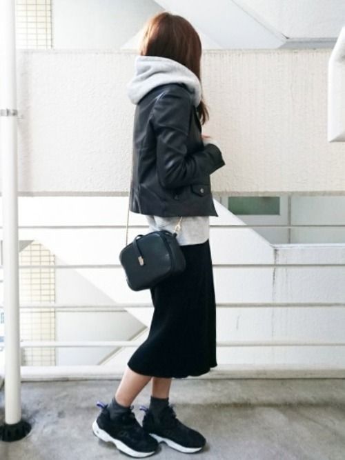 タイトスカート×スニーカー×ライダースでクールにきめる♡