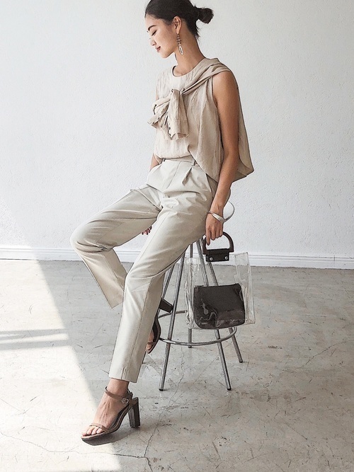 《ベージュ》ユニクロシャツ×センタープレスで美人シルエットコーデ