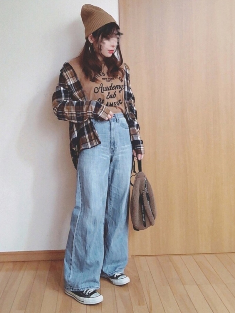 《デート》ネルシャツ×アウターであったかコーデ♡