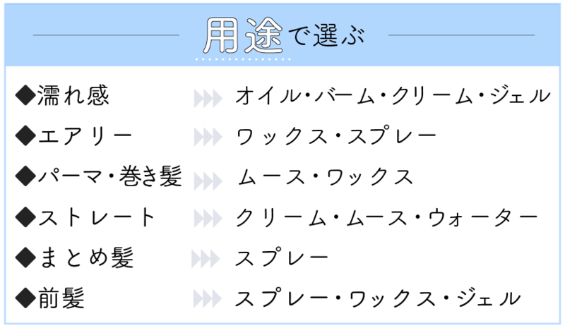 スタイリング剤の種類は豊富なので、詳しく見ていきましょう!