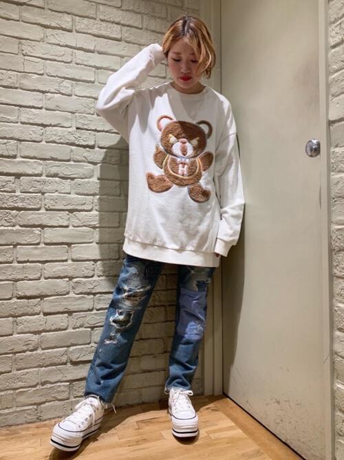 【冬レディース】ロゴスウェットでラフなアメカジコーデ♡
