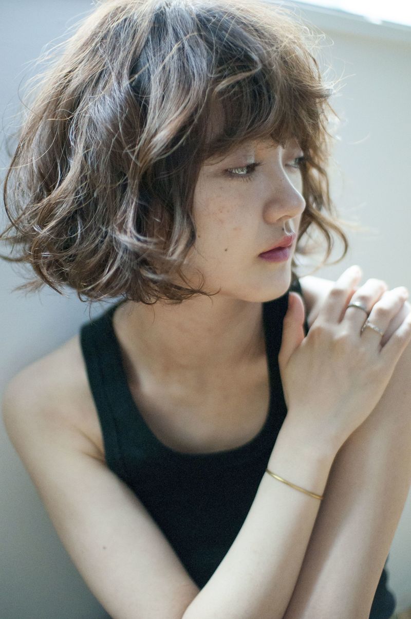 強めパーマと合わせれば、一気にニュアンシーな外国人風ショートに仕上がります。ドライな質感で仕上げることで重くみえず、ヌケ感のあるショートヘアに。サイドにボリュームを出すときは顎ラインより上にすると◎。