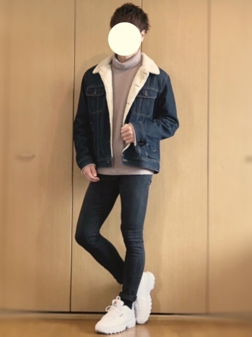 メンズ冬服コーデ10. デニムジャケットにはトレンド感のあるアイテムを