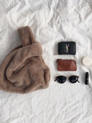 バッグデザインがキュートな印象のニットには、シンプルかつ上品なワンピースを組み合わせましょう。ブラウン系ニットのカラーが引き立つとともに、カジュアルな装いもワンランク上に見せてくれますよ♡ニットはオーバーサイズを選ぶとGOOD!