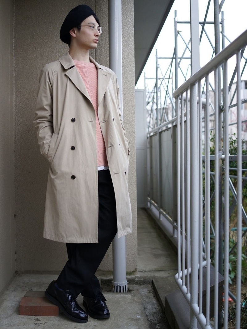 17. 《ピンクニット×トレンチコート》春先におすすめしたいメンズコーデ