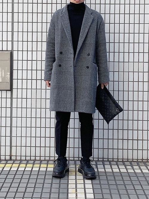 6. 《グレーニット×ロングコート》紳士な印象が漂うメンズコーデ
