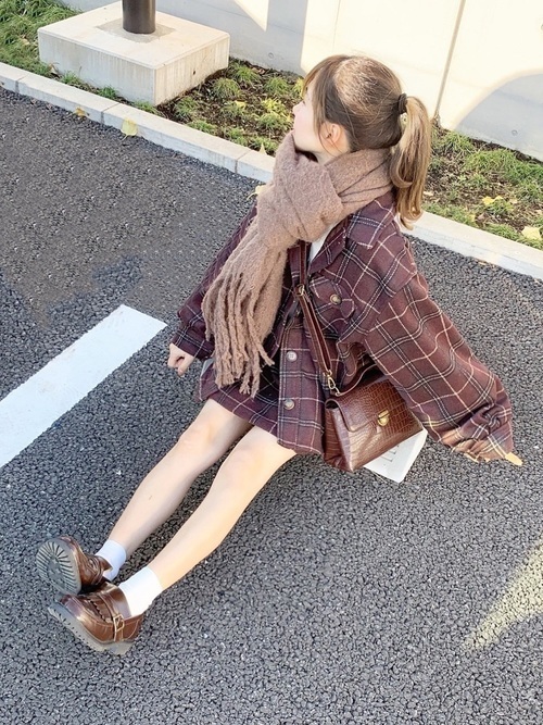 ブラウンローファー×セットアップで、無邪気な女の子コーデ