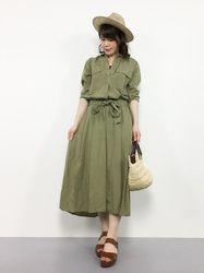 カジュアルにまとめたシャツワンピは、お花見など春のイベントにぴったりですよ。