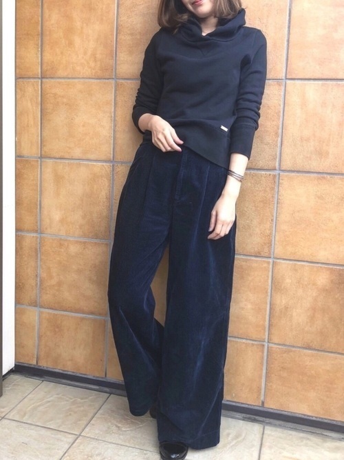 トップスはコーデュロイワイドパンツにINして足長に見せるのがコツですよ♪